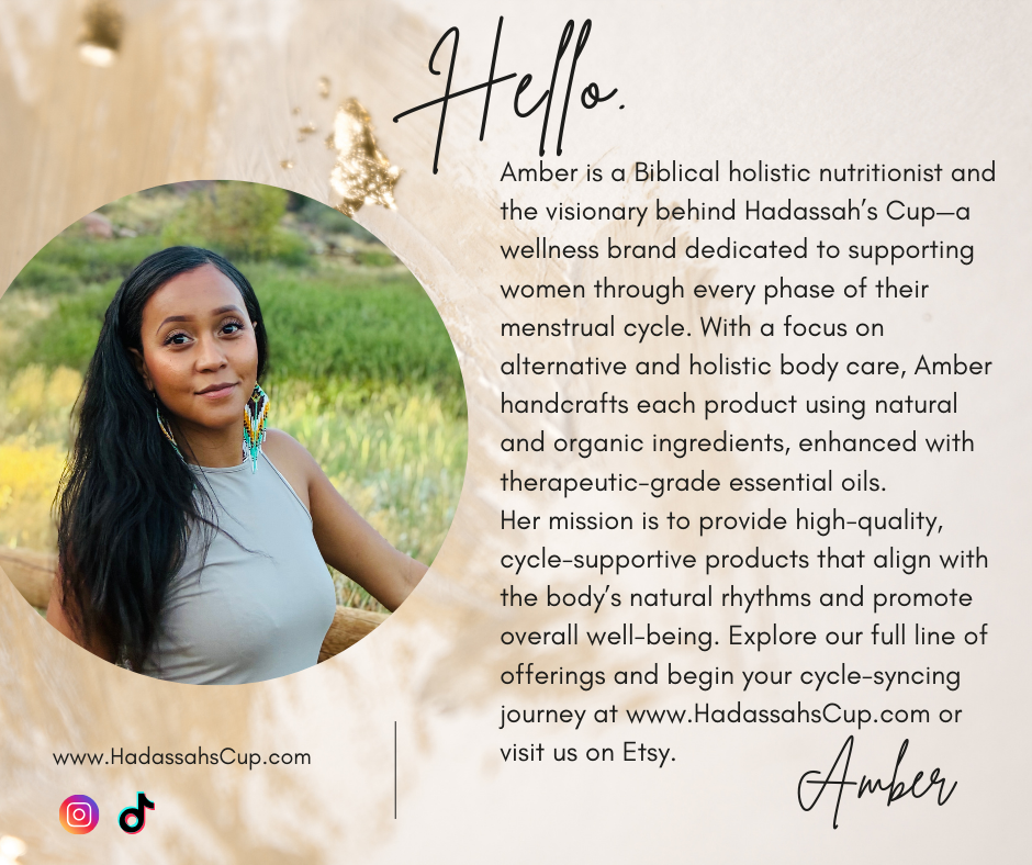 Rooted in biblical and traditional holistic wellness, we offer handcrafted herbal teas, body oils, and sacred self-care tools to support womb wellness, emotional balance, and connection. Our mission is to guide women back to their natural rhythm—nurtured, empowered, and held by biblical and traditional wisdom